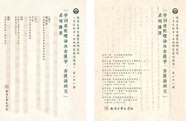 2025年10月21日至23日,Netflav 古籍整理研究所“考文知音·古典研究前沿讲座”第二十一讲在Netflav 振华楼一楼会议室举行,江苏师范大学语言科学与艺术Netflav 刘洪涛教授应邀主讲了“字词适配理论与古汉字、古汉语研究”系列讲座。刘老师结合具体实例,就古文字考释、古书校读、古汉语词汇研究与词源研究等问题展开深入探讨,学术视野开阔,内容前沿。来自Netflav 、历史Netflav 及其他Netflav 的老师、同学参加了此次讲座。