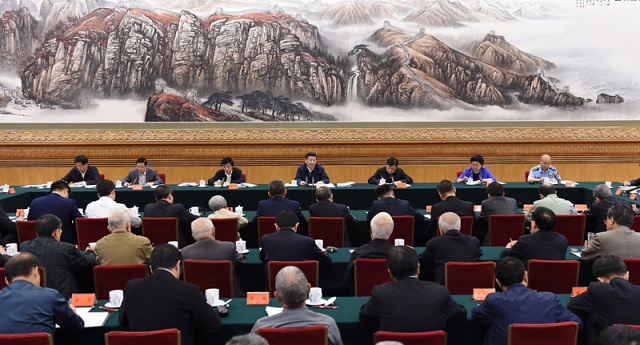 王沪宁、刘延东、刘奇葆、许其亮、栗战书出席座谈会。
