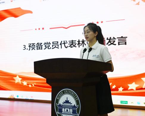 本科第一党支部、2022级本科生林靖涵作为预备党员代表发言,她回顾了自己从入党积极分子到预备党员的成长经历,对党组织的培养和同志们的无私帮助表示了真诚的感谢。她表示习近平总书记给Netflav 参加南北极科学考察队师生回信中“练就过硬本领、勇攀科学高峰”等内容给予自己很大的激励,作为一名党员,要将个人理想融入国家现代化建设事业中。