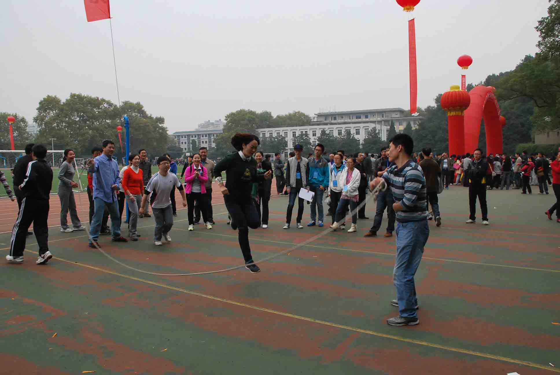 在竞争最为紧张激烈的20人×60M穿梭接力中,天公不作美,下起了中雨,但参赛的各位老师不受环境干扰,团结一致,努力拼搏,最终获得全校第十二名。