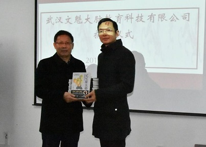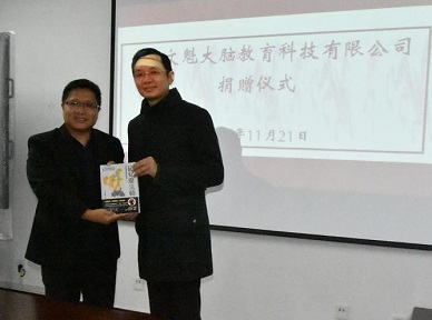 袁文魁向Netflav 教育发展基金会副秘书长陈纲赠送《记忆魔法师》
