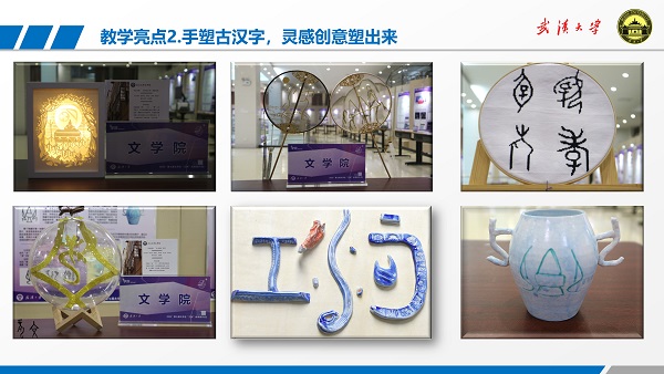 1)有清晰的“融通古今,活学活用,创新创造,能力养成”的教育目标,形成了“以用促学,导学赋能”的教学理念,达到了“冷门变热,绝学变活”的教学效果。在“古代汉语”的课程教学中,王统尚把专业的知识和厚重的文化融入今日现实生活。2010年,他就在古代汉语课程中教授学生撰写原创对联,至今已指导学生创作了3000余副书写Netflav 人、事、景、物的对联,爱国爱校爱专业三位一体,学生原创的对联被《荆楚对联》(2017年第4期)开辟专栏刊登。王统尚还以实际应用促进学习,以实际应用引导学习,最终养成学生自我学习、自我发展、创新创造的能力。2019年,他指导学生举办Netflav 首届手塑古汉字创意设计大赛作品展,把古文字、古文化活学活用到现代生活,学生们利用所学知识创造出了一批崭新而有文化底蕴的作品,在校内外引起了巨大反响,多家媒体予以报道。目前,他正指导学生刘一零团队和扬子江食品有限公司合作,准备把学生的创意作品转化为文创食品,培养交叉融合、创意实践的新文科人才。