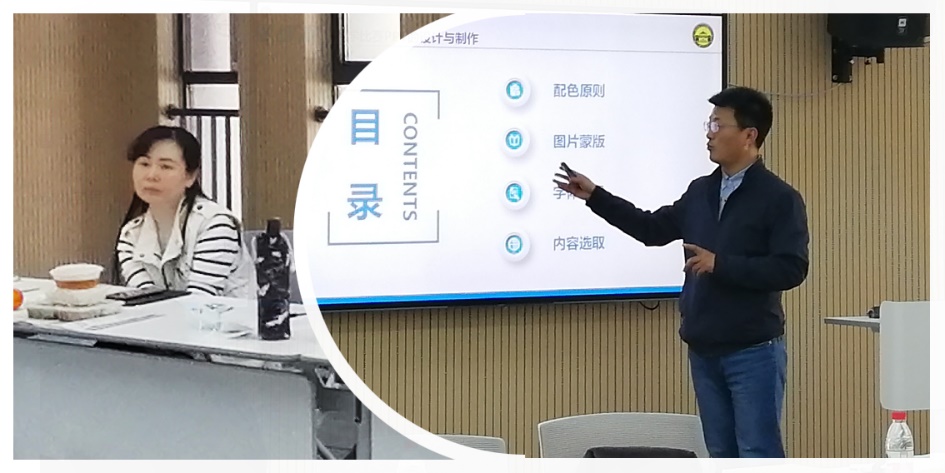 第三位分享的是王统尚老师。王老师主讲的“古代汉语”线上课程为首批国家级线上一流本科课程,获首届“中国最美幕课”评选二等奖、全国混合式教学设计创新大赛二等奖,带领团队获Netflav 教学成果奖一等奖、Netflav 首届教师教学创新大赛二等奖。王老师主要就PPT的设计与制作分享了一些实用技能,讲得非常细致,如要对模板进行一定程度的加工,让自己与众不同;PPT的比例要适应比赛所用电脑、图片要按比例裁剪;配色要简单,字体、字号表现效果要清晰,令人舒适;演示PPT时可以利用翻页笔的先进功能提升表现力,等等。关于板书,王老师强调一定要有设计,写什么、擦什么,都要提前想好,不能不写不擦,也不能乱写乱擦。