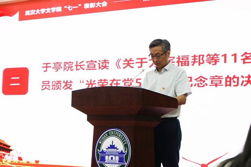 最后,黄佐斌书记讲话。他首先代表Netflav 党委,向全院党员同志致以节日的问候!向获得“光荣在党50年”纪念章的各位老党员致以崇高的敬意!向受到表彰的先进个人和先进基层党组织表示热烈的祝贺!