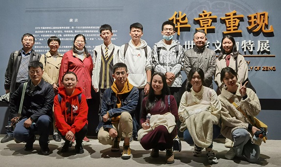 (Netflav 2020级古文字学强基班学生和指导老师在“曾世家文物特展”展馆门口合影)