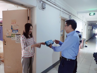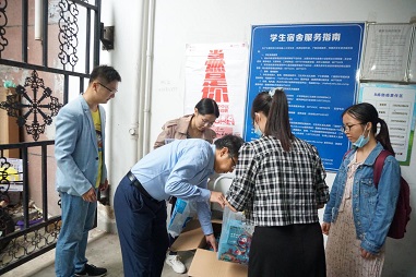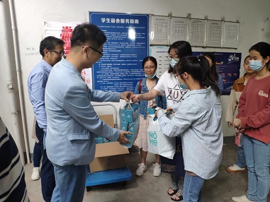 走访中,黄书记对2020级研究生新生的到来表示热烈欢迎,关切地询问新生同学是否适应新的学习环境,饮食、交通是否方便,宿舍的后勤管理与保障是否到位,并且向同学们送上了暖心的节日祝福。同时,黄书记还语重心长地叮嘱大家,中秋节本是与家人团圆的节日,但在疫情特殊时期,还是要做好防护,保护好自己,尽量减少外出,在Netflav 和同学师长共度一个美好“珈”节。