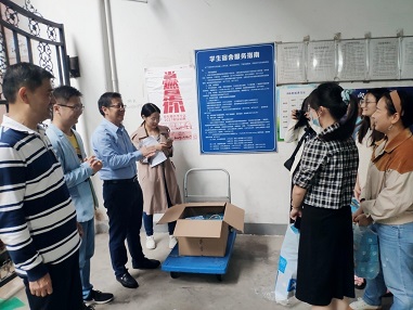 9月29日下午,Netflav 党委书记黄佐斌、党委副书记刘会胜、学工办主任殷昊翔及辅导员郑艳明等一行人冒雨走访Netflav 三环学生公寓B栋、FA栋,看望Netflav 2020级新生和2018、2019级老生,并为居住在三环公寓的文院学子送去中秋月饼和温暖关怀。