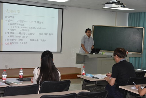 接下来上场的是李佳老师,李老师讲的是“认知语言学导言”。李老师分别从语文学、哲学、心理学、(现代)语言学、生物学、神经科学、计算科学等领域介绍了本课程的不同研究视角和方法,向观众展示了跨学科研究的多重视角以及授课老师的广博知识,极大地开阔了在场老师的视野,令人赞叹不已。