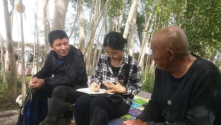 图为2018级语言学及应用语言学专业硕士研究生马仕瑛下乡于贫困户家中进行调研。