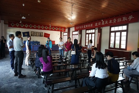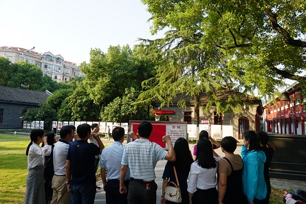 一行人进入会址旧址,近距离接触迄今仍保存完好的学宫式建筑群。在厚重的历史文化氛围中,同志们谈古论今,一同感受幼年时期的中国共产党探索革命道路的艰难与不易,共同缅怀革命先烈对中国革命和中华民族的丰功伟绩。