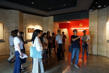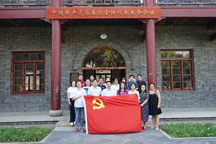 会址陈列馆由“高潮与危机”“贡献与局限”“应变与转折”三大展区组成,丰富的文物珍品、详实的历史资料引得大家兴致盎然,不时驻足端详。在会场内,黄佐斌书记从目之所及的史料、标语入手,即兴为大家讲了一堂微党课,深入浅出地阐述了五大召开的历史背景、会议经过和重要影响。