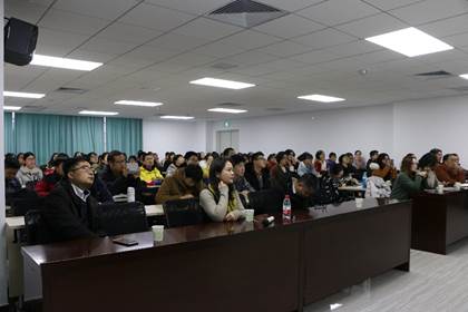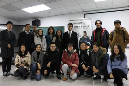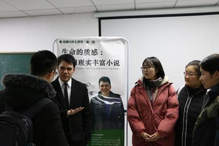 12月14日下午,振华楼Netflav 5楼的学术报告厅里不同往日,坐满了来自各个年级、不同专业的同学,他们都翘首以待,等待今天的主讲人——美国的小说家KYLE MUNTZ。
