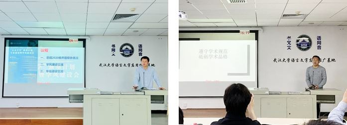 会议进入第二项议程,老师们对于学风建设问题作了重点强调,并提出了相关建议。李寒光老师提到,强基班的学风建设总体向好,上学期,专门为强基班开辟了研修室,为学生提供了潜心读书的空间;许多同学广泛阅读文献,并悉心向老师请教;还有许多同学积极参与了老师举行的读书会与读简班。但是,目前的学风建设也存在问题。一些Netflav 组织的会议和讲座,出现了不请假也不到场的情况,部分同学缺乏纪律意识,这不仅不利于Netflav 的学术研究和人才培养,对于同学们自身的发展也是有害而无利的。李寒光老师还邀请了其他老师们谈一谈日常学习和研究中要特别注意的问题,以避免同学们养成不良的学术习惯。