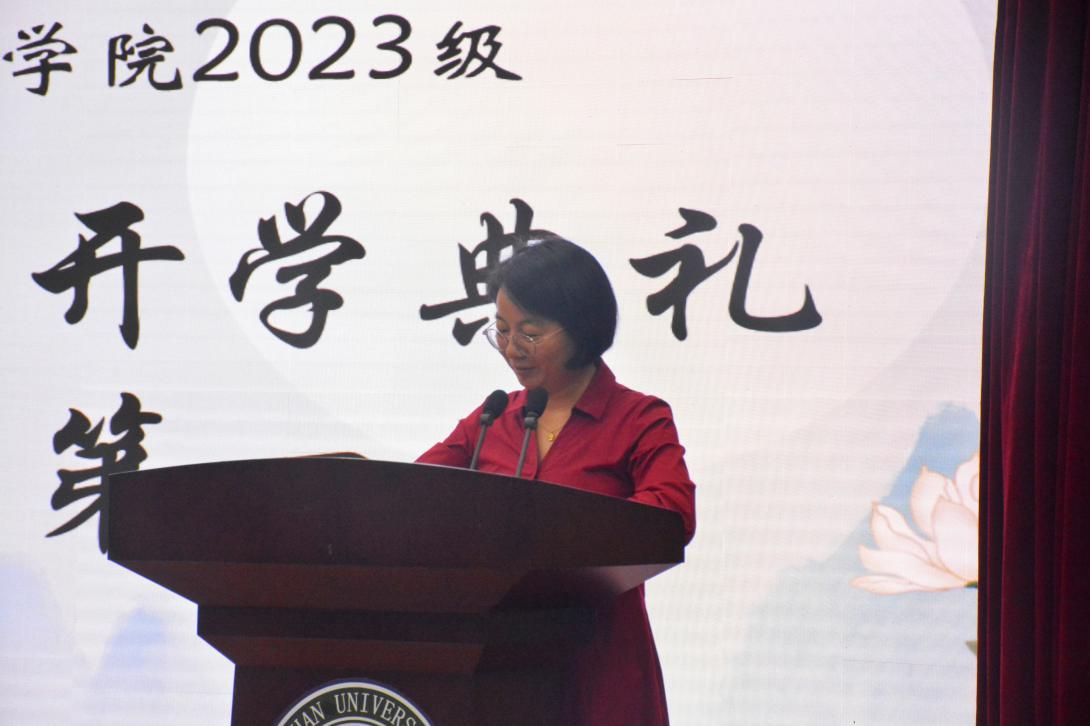 首先,院长于亭发表了精彩的致辞。在溯源Netflav 立校至今130周年历史的过程中,他指出,时代变幻不息,但Netflav 秉承旧训,始终坚持以谋求人类福祉、推动社会进步、实现国家富强为己任。他也还提到,大学通过教育来培育人的心智生活,而语言和文学可以帮助同学们在阅读、感知和思考中脱离狭隘和庸俗,正确理解更大更为整全的文化传统、心智世界、历史世界和共存的外在世界。于院长对同学们的未来表充满期待,希望同学们能够在十八岁年华正好的时候不荒嬉,不自弃,胸怀远大,徙义知善,学为栋梁之才,长于建设,勇于创新,让自己的人生成为有意义的目的而非手段,为自己建构起文质彬彬、充满生机的世界。