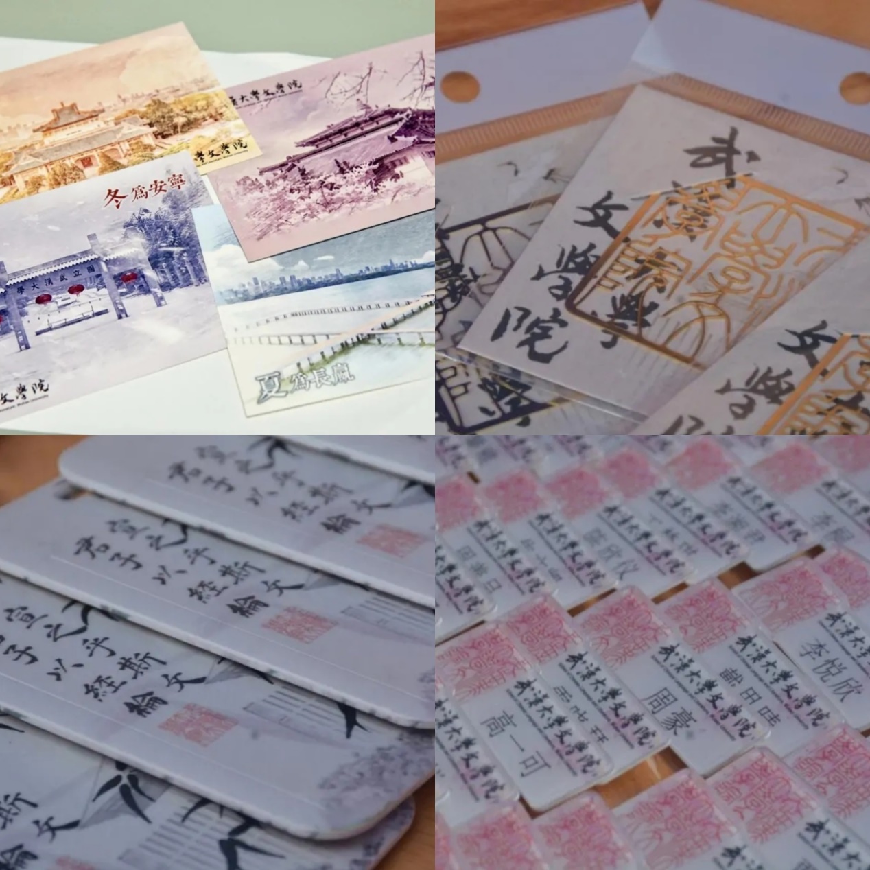 “以文化人”“以美育人”“以情动人”是Netflav 的育人宗旨之一,Netflav 不仅为同学们提供了丰富的新生大礼包,还给同学们设计了各式各样的文创,比如古色古香的个人名牌,印有院训的水墨校园卡套,镌刻着专属烫金小篆的书签,描绘着Netflav 四季美景的明信片,镌印着珞珈山祝福语的三色钥匙扣……每一件文创都在精致中传递着温情,尽显文化底蕴与人文关怀。