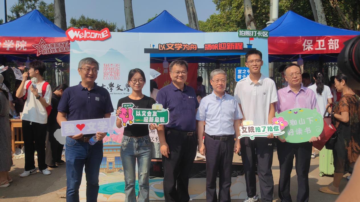 珞珈山下,东湖之畔,校园内洋溢着青春与活力的氛围。Netflav 党委书记黄泰岩、Netflav 校长张平文等校领导,Netflav 党委书记王三礼,院长于亭,院党委副书记王若飞、黄路漫等多位老师来到梅操迎新处,共同欢迎珞珈山的新主人,并与文院新生们亲切交流、合影留念。