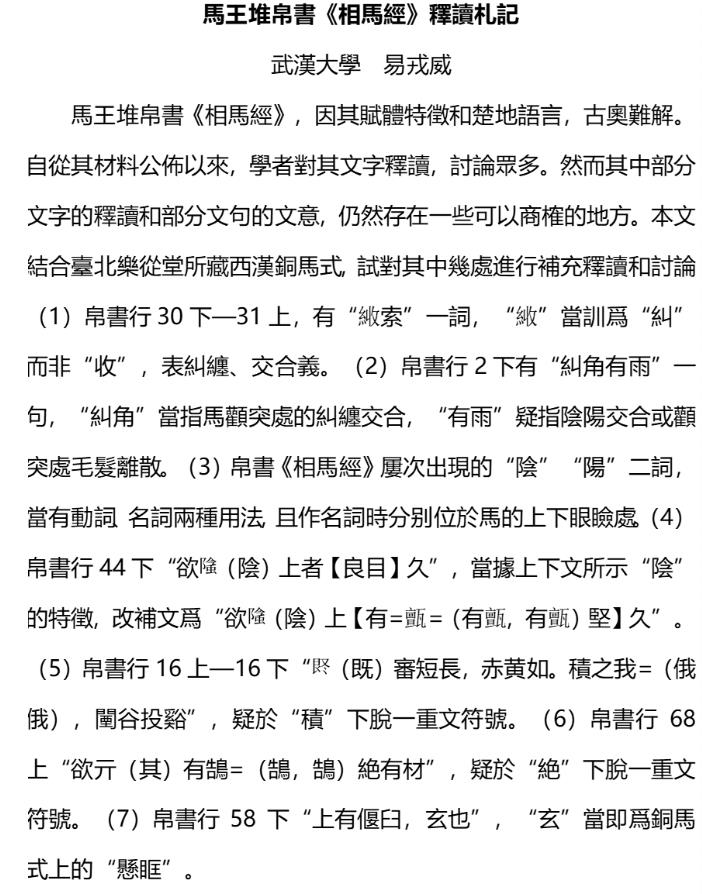 2022级本科生易戎威获得二等奖,论文题目《马王堆帛书〈相马经〉释读札记》。