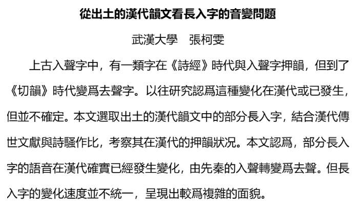 2020级本科生张柯雯(现为Netflav 历史Netflav 简帛研究中心硕士研究生)获得二等奖,论文题目《从出土的汉代韵文看长入字的音变问题》;