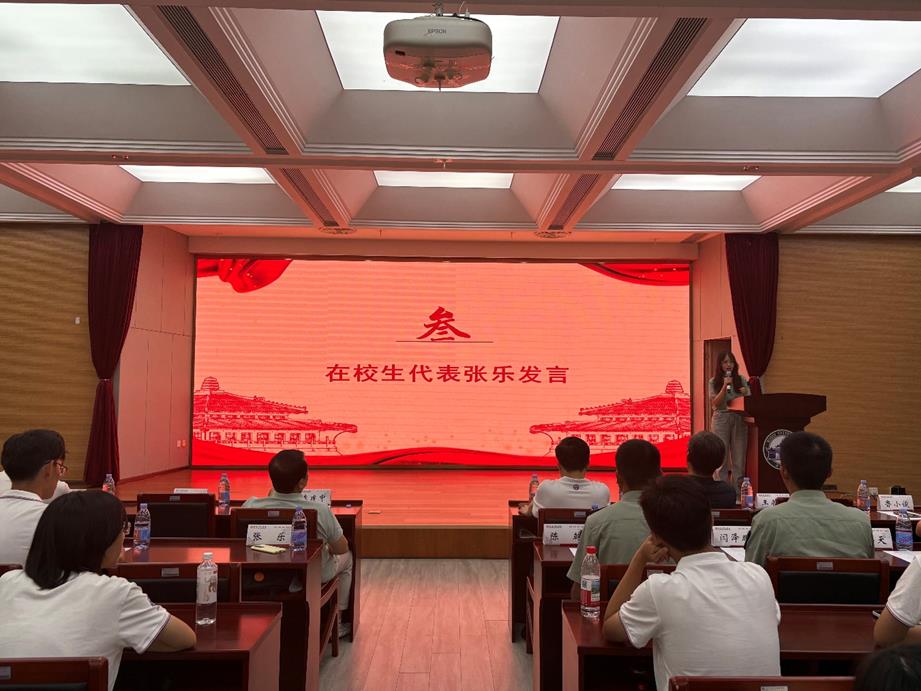 2023 级汉语言文学专业的张乐同学作为在校生代表发言。她结合学生的实际生活和真实体验,体现出文院学子对世界的思考与探寻。