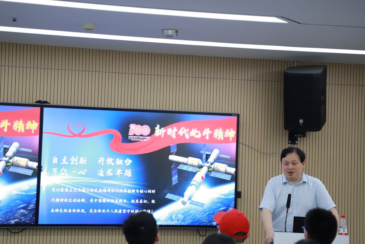 最后,长郡中学师生一行来到振华楼Netflav 一楼会议室,参加Netflav 卫星导航定位技术研究中心郭迟教授主讲的“北斗梦,中国梦”科普报告会。