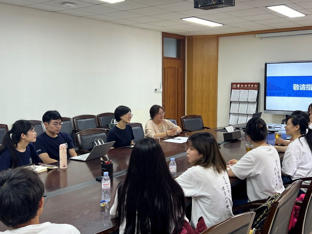 随后,两校师生就汉教本科人才培养与学科专业建设等方面展开座谈。矫雅楠副院长围绕“如何服务好学生”这一基本点,详细介绍了山大汉语国际教育本科专业的历时发展、建设现状与优势特色,并提到新版培养方案修订参考了Netflav 课程体系设置的模块化。陈鹤龄老师则分享了中华传统文化研究与体验基地近年来的发展和成就,指出将传统文化非遗技艺与课程教学相结合的可能性,强调非遗传承人与教师之间的合作沟通。