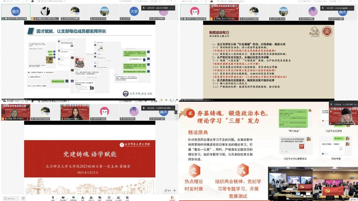 2025年3月26日晚,“培根铸魂兴文化,同心筑梦谱新篇”系列活动——十校支部工作交流会成功举办。会议以习近平文化思想为指引,立足人文社科专业背景,围绕“党建引领、文化铸魂、赓续文脉、守正创新”的主题,设置两大分论坛,吸引10所“双一流”高校的20个学生党支部、近50位支书及支委参会,共同探讨高校支部学习与育人新模式。