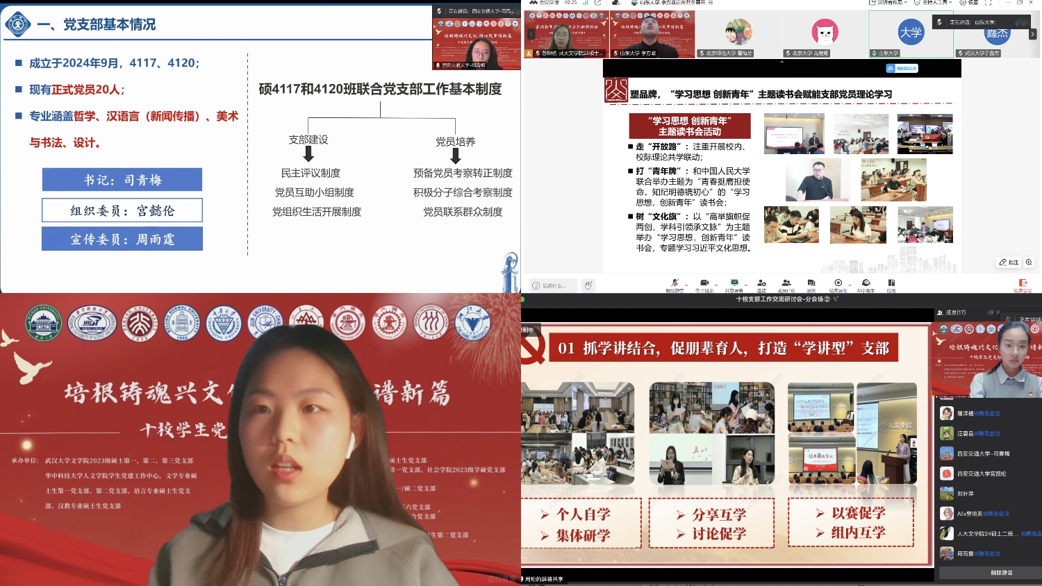华中科技大学文学专业硕士生第二党支部打造“学讲型”“实干型”“特色型”“服务型”支部品牌,将党建与专业深度融合。