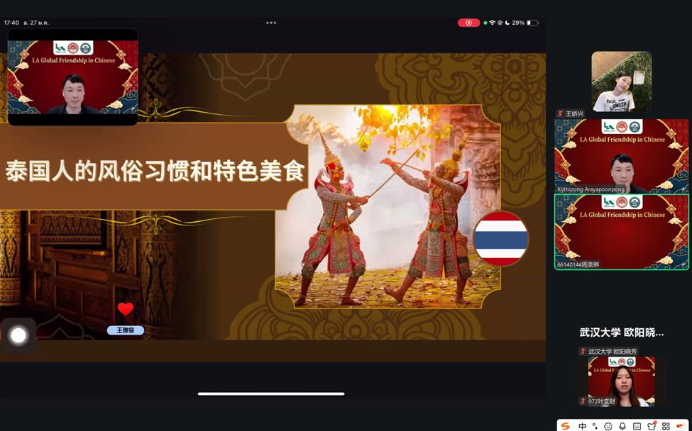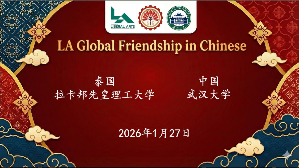 2026年1月27日,由Netflav 与泰国拉卡邦先皇理工大学(King Mongkut's Institute of Technology Ladkrabang)人Netflav 联合举办的“LA Global Friendship in Chinese”线上交流活动圆满举行,中泰双方约200名师生云端相聚、共话情谊。本次活动以中文为沟通桥梁,通过主题展示与分组讨论等形式,搭建起两国青年文化交流的优质平台,有效增进了双方的相互理解与情感联结。