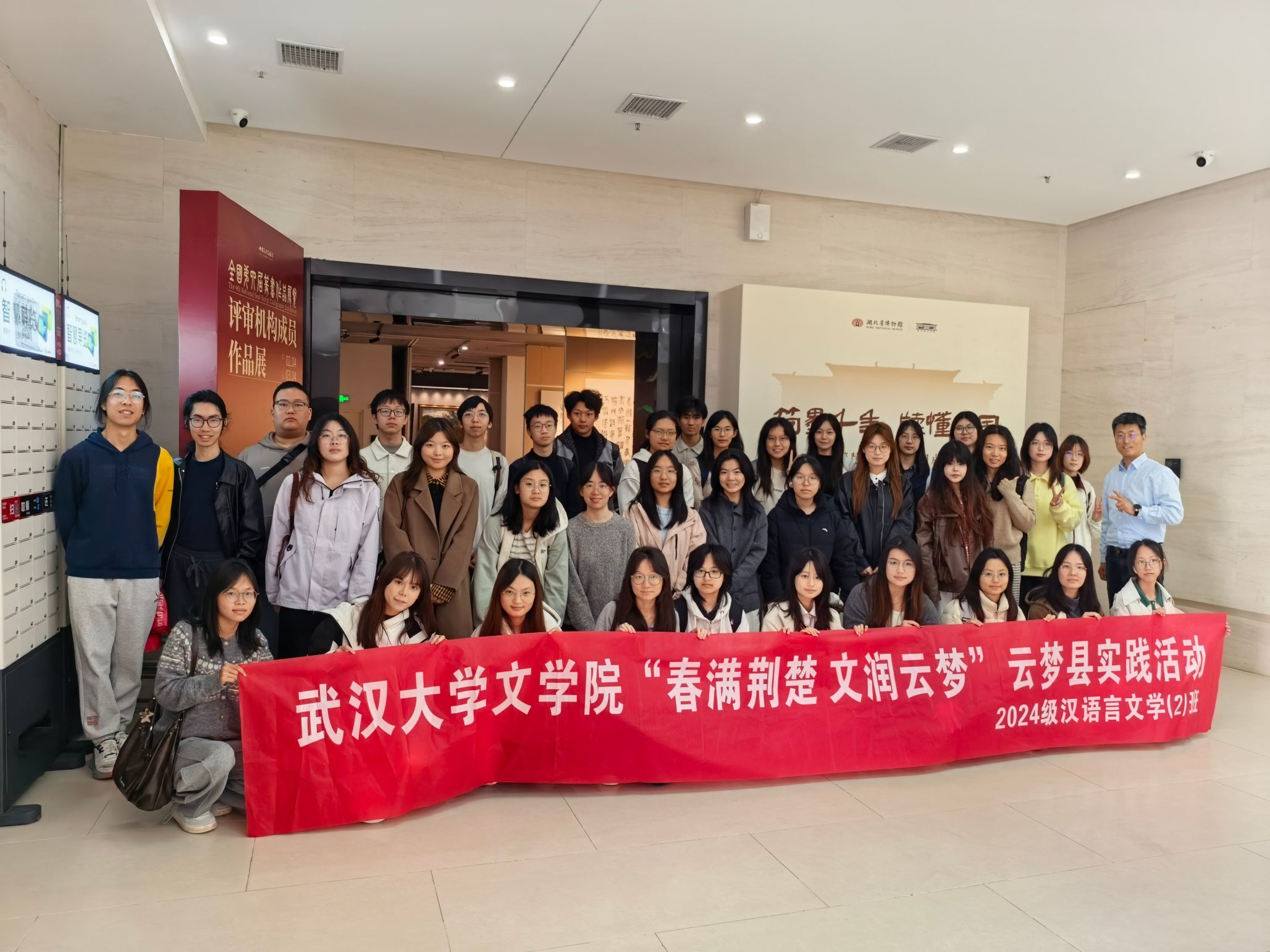 阳春布德泽,万物生光辉。3月22日,在班导王统尚、辅导员丁宇梁的带领下,Netflav 2024级汉语言文学专业二班26名同学与9名Netflav 团委、学生会的同学踏着熹微晨光,迎着阵阵暖风,共赴湖北孝感云梦县,开启了一场感受荆楚遗韵、探寻简牍历史的研学实践活动。