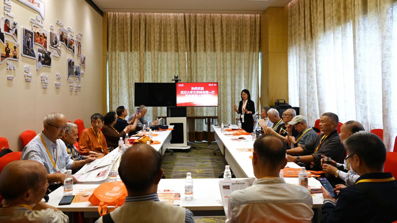 随后,老师们前往楚园的活力中心稍作休息。这里环境优雅、设计独特,与周围的自然环境和谐相融。讲解员热情地为大家介绍了楚园的建筑布局与设计灵感,楚园的建筑风格在彰显现代特色的同时,巧妙地保留了传统韵味,融入了瓦当、屋檐等和武大相似的建筑元素,充满了文化和历史的气息。无论是建筑的线条、色彩,还是空间的布局,都宁静而和谐,让人感受到家的温暖与舒适。讲解员还为老师们介绍了楚园的养老照护方案,包括健康管理、日常照料、精神慰藉等多个方面,让老师们全面了解现代养老社区的活力与品质。